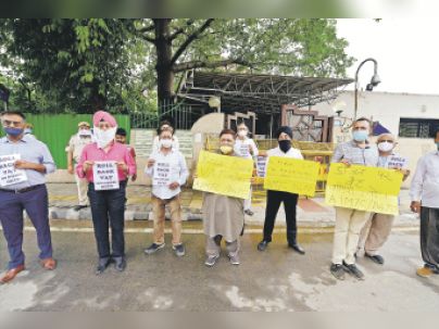 न्यू मोती नगर में लग्जरी कार को बैलगाड़ी से खींचकर जताया विरोध